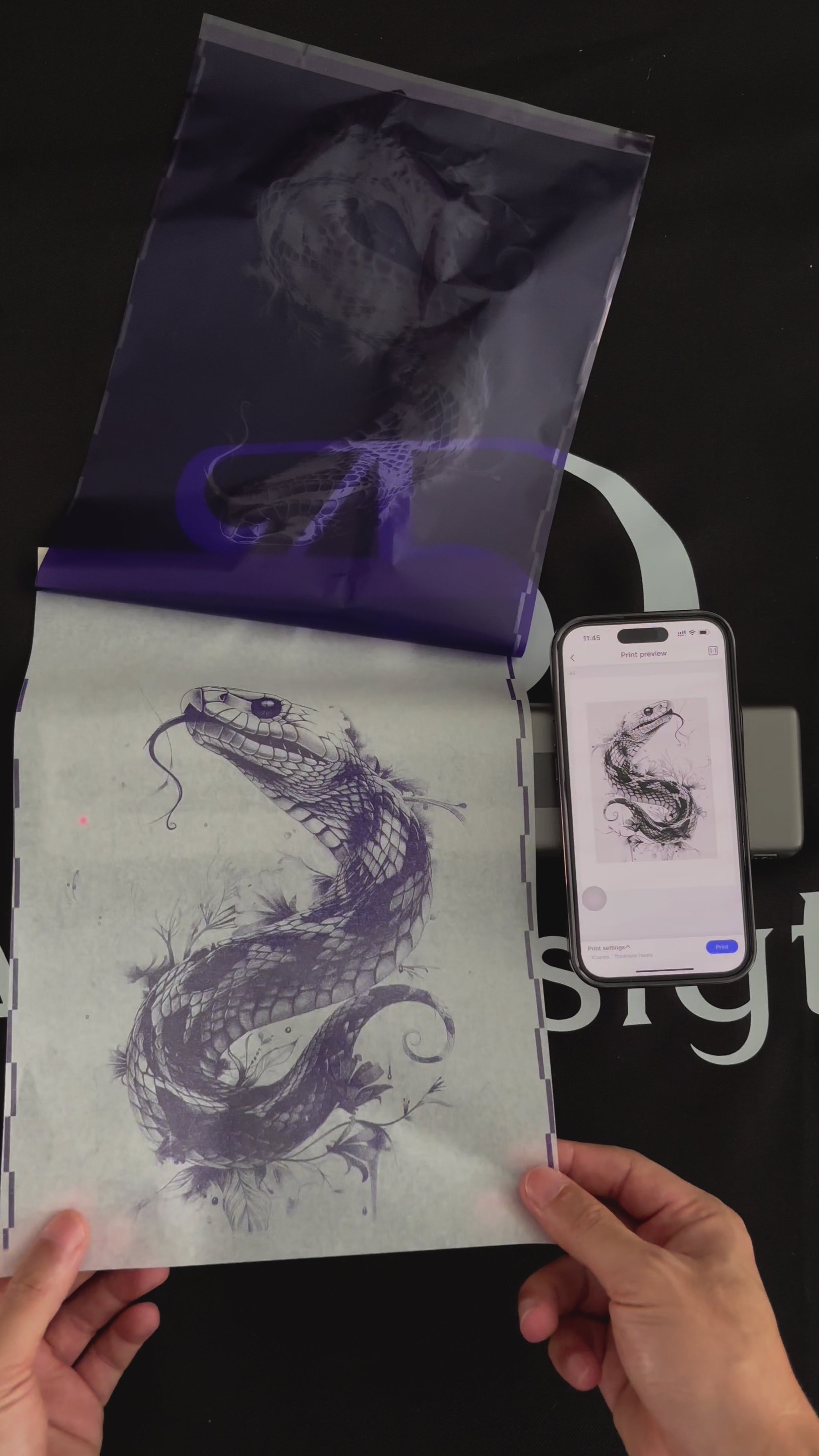 Preparation: Clean and shave the skin area where the tattoo will be applied. Use a transfer gel or cream to ensure the stencil adheres properly.