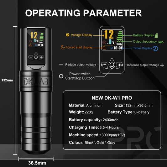 2024 DKLAB DK-W1 2400mAh Adjustable Wireless Tattoo Pen Machine