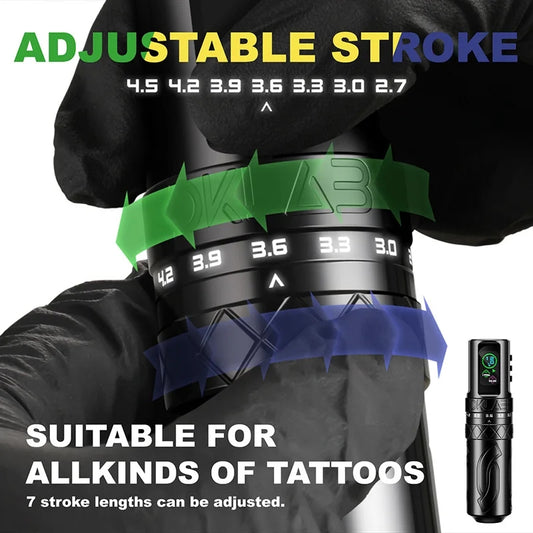 Audersigt Wireless TattooPen Machine with 1800 mAh Battery & Stroke Adjustment From 2.7~4.5 mm